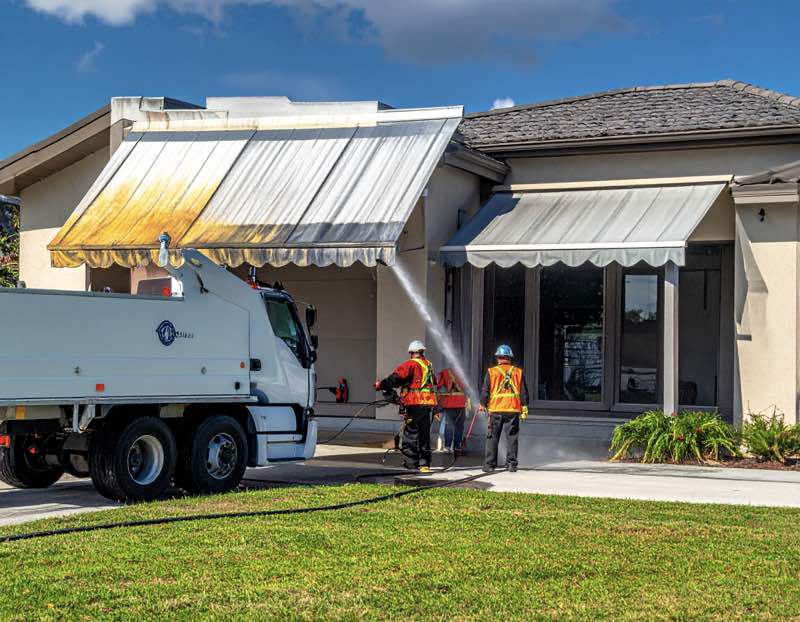 Low-Pressure Soft Washing Safely Removes Mold and Algae from Fabric Awnings